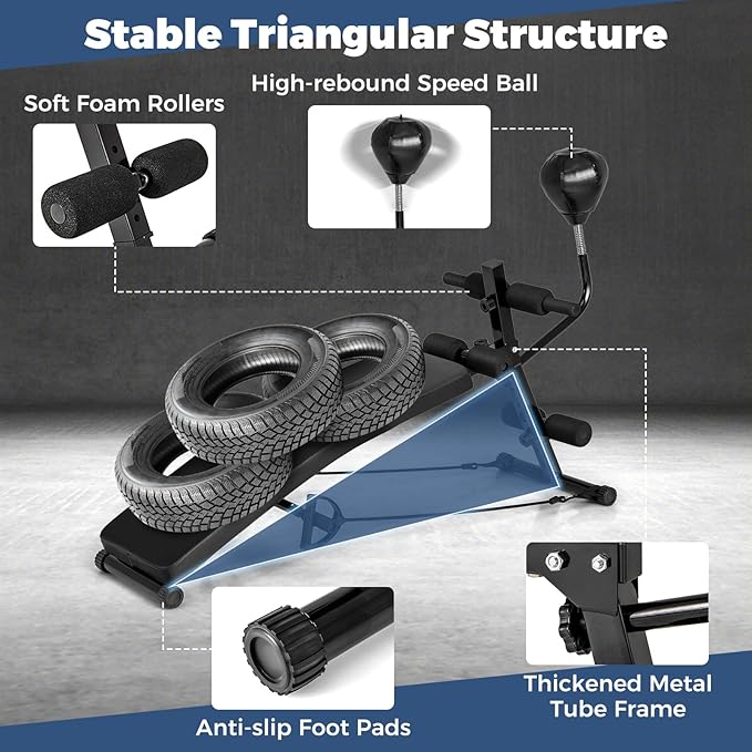 - 3 in 1 Design: Featuring a speed ball and 2 resistance bands, GYMAX sit up bench offers you multiple exercise. Speed ball makes situp more interesting while resistance bands helps to train upper body.