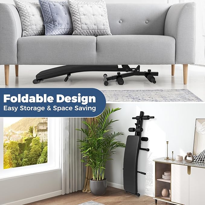 - Home Gym Addition: Can be folded to compact size of 53" x 20.5" x 8", this decline bench is effortless to store, even for small space, which would be a perfect equipment for your home gym and suitable for your whole family daily workout.