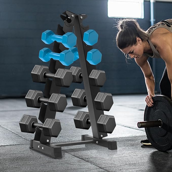 - Strong Stability: The stable triangular support structure and the added crossbar enhance the load-bearing with 660 lbs, making it suitable for various weights of dumbbells, which can meet the needs of both individual and team training.