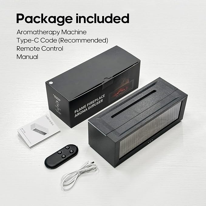 - Ultrasonic Fireplace Diffuser: It combines ultrasonic atomization technology, converts water and essential oils into tiny clusters of molecules to create the vapor. When using the diffuser, add 3-5 drops of your favorite essential oil, and the fragrance will fill with the room. Also it can help your relax nerves and relieve fatigue