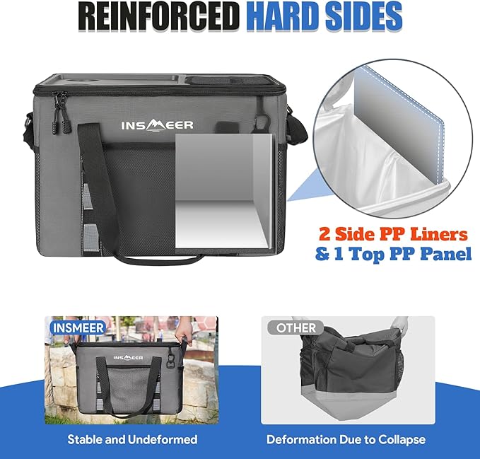 INSMEER Soft Cooler Bag with Hard Shell & 2 Cup Holders, Portable 40L/70 Cans Collapsible Cooler Bags Insulated with Leakproof for Travel, ice chests and Cooler Lunch Box for Beach Camping Picnic