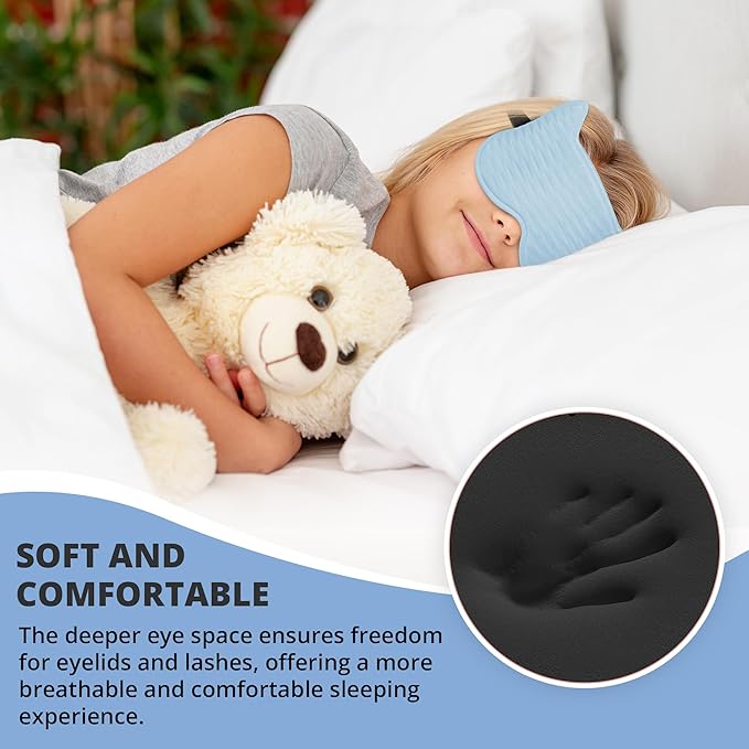 - 【Soft & Skin-Friendly Material】Made from ultra-smooth nylon ice silk, the kids eye mask for sleeping breathable and hypoallergenic properties make eye mask for kids ideal for kids with sensitive skin, ensuring comfort without any irritation. The soft and lightweight fabric stays gentle against the face while providing a soothing, cool touch