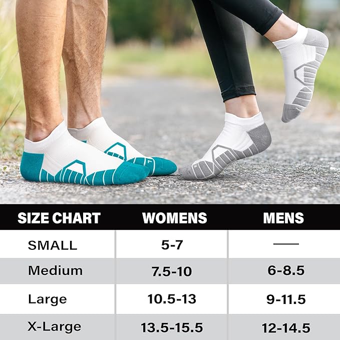 - No Show Compression Socks – These short socks for sports apply gentle pressure to your feet. The compression arch support keeps runners’ arch stable and secure fit, reducing fascia fatigue while running. we added an extra tab to make sure you experience an no blister pair of sucks