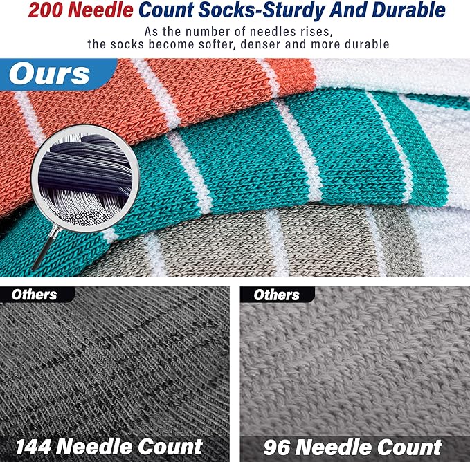 - High Performance Socks - Our 200 needle knit socks achieve the highest levels of quality and durability. While others use 96, 144 needles, we use 200 needles technology to benefit you with denser and lighter socks which makes it the best running socks, gym socks, golf socks and workout socks for men and women athletes