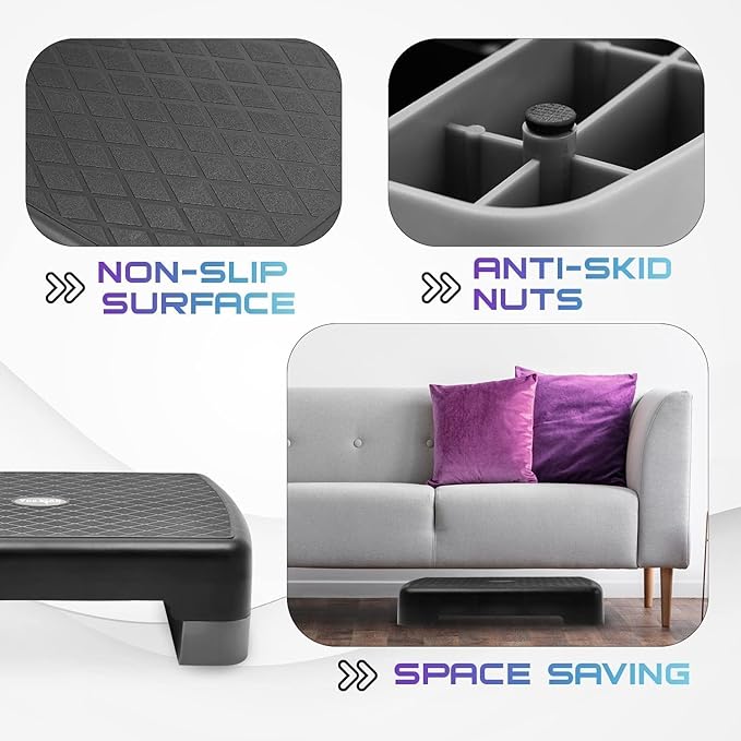 - MULTI BENEFIT WORKOUT EQUIPMENT: Offer a multitude of benefits such as building strength, maintain your body weight, tone and elevating flexibility; The mini step riser is ideal for all ages & fitness levels