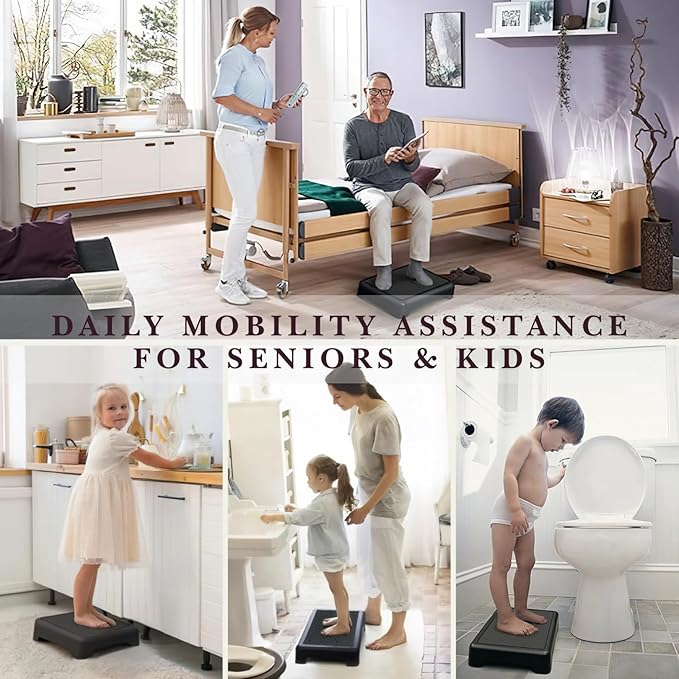 - 🚶️【Wide Platform & Short Height for Maximum Stability & Mobility Aid】With a low height of 3.35'' and a wide platform (16.5"L x 12.6"W), it further enhances stability during use. This low-height design is specifically tailored for the elderly and individuals with limited mobility, as it reduces the effort needed to lift their legs, making it easy for them to step on and off. It's a great mobility aid that helps them maintain independence in daily life, whether it's getting into bed, reaching for items in cabinets, or accessing the bathtub.