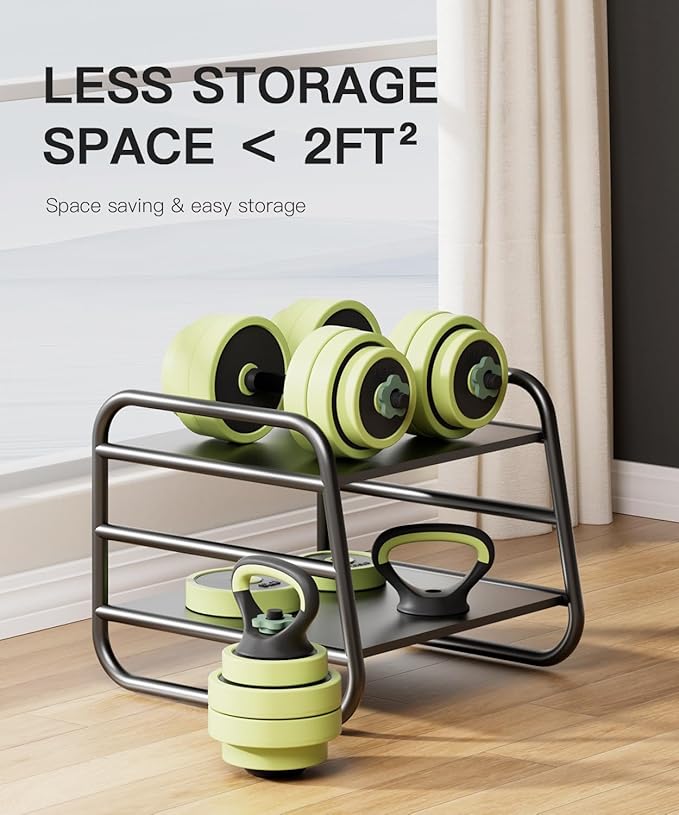 - Sturdy Quality Build: Unlike traditional cement-filled weights, our dumbbells are crafted from solid iron sand through high-pressure casting, providing superior durability and precise weight accuracy. Wrapped in thick 4mm TPR material, they are quieter, eco-friendly, and won't damage your floors. Plus, they require only 2Ft² of storage space!
