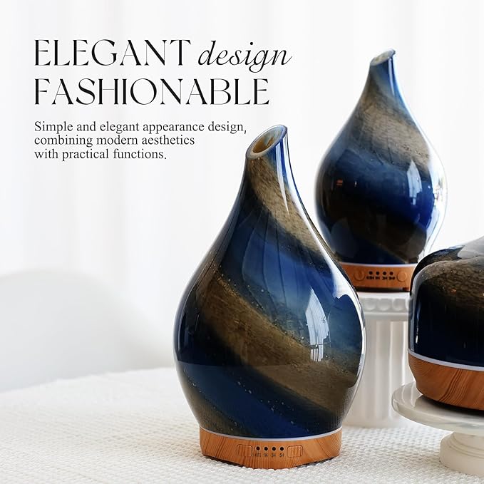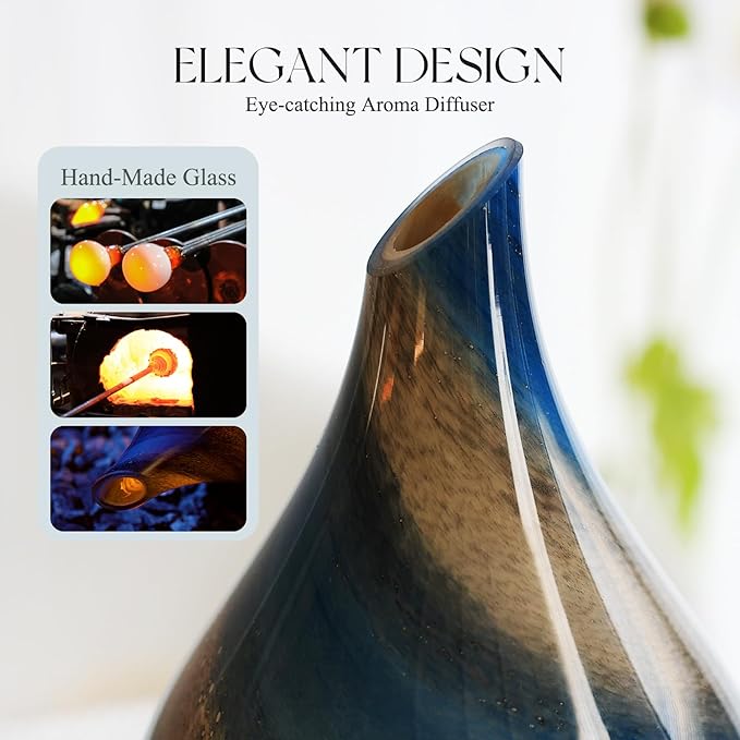 - UNIQUE ART DECOR - 280ml glass essential oil diffuser with star-shaped glass cover & wood grain base. Adds artistic harmony to your living space, perfect for bedrooms, living rooms, kids' rooms, studies, offices, & yoga studios. Enhances ambience
