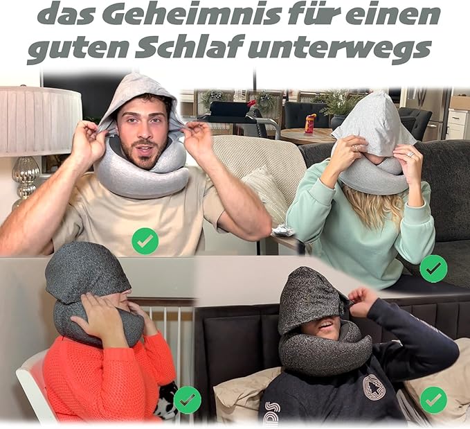 - 【New Hoodie Design】: Get a cozy sleep with hooded neck pillow; It blocks light, shields from AC cold airflow, and eliminates the need for an additional eye mask; Plus it converts to a regular 360° Ergonomic Pillow when you stow the hood in the back