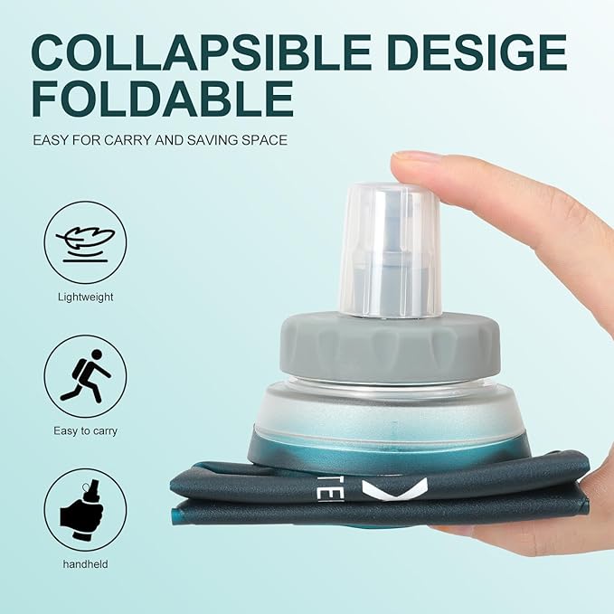 - đ§ăSTRONG AFTER-SALE SUPPORTă: Our running vest water bottle wear-resistant and odorless , it can be used continuously for many years. If there is something wrong in our sports water bottle. Or don't like the silicone travel water bottles. Welcome to contact us. And we will replace foldable water bottle or refund. That means you donât ever have to worry about the hassle of returns.