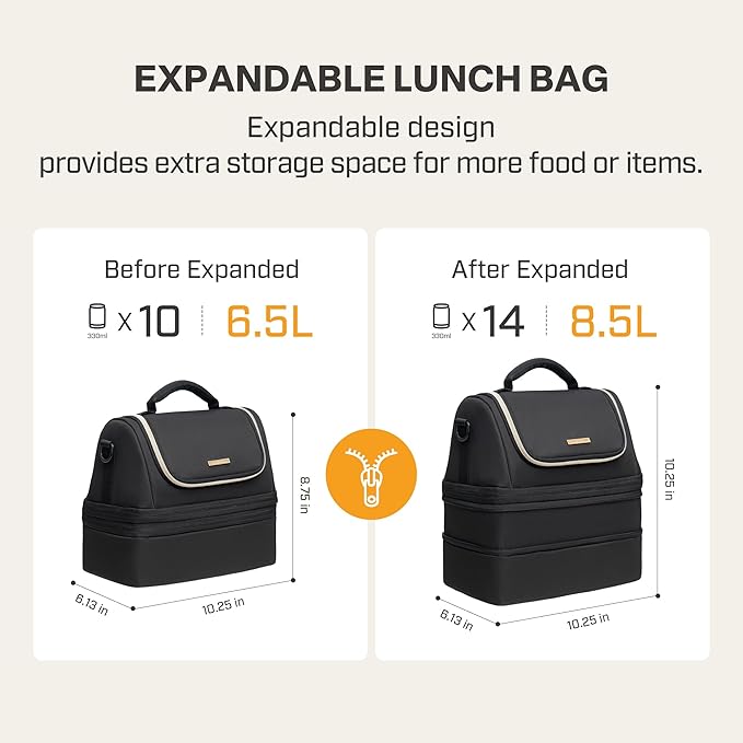 Everfun Expandable Lunch Box for Women with Container, Double Deck Lunch Bag Insulated Leakproof Large Cooler Bag with Adjustable Strap