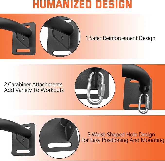 - 【Equipped With Two Carabiners】This pullup bar applicable for multiple exercise, such as resistance training, suspension training, strength training, assisted pull-ups, cross-training