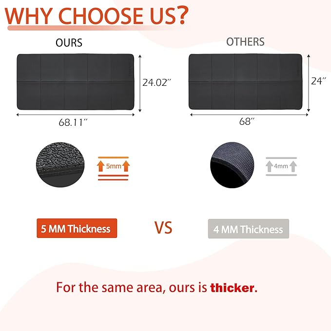 - ✔️【FOLDABLE MAT & SPACE-SAVING】This foldable exercise mats for floor saves space efficiently, folding down to 11.81"*13.6"*1.5" for easy storage in a cabinet or backpack. More compact and portable than traditional gym equipment mats, it's the perfect addition to your home gym.