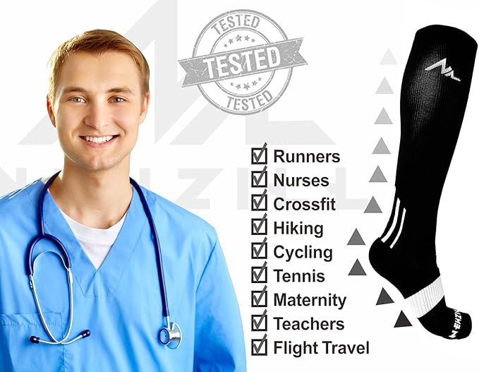 - 【IDEAL COMPRESSION SOCKS FOR ALL OCCASIONS】Our compression socks cater to a diverse range of needs from running nursing and traveling to sports like volleyball and basketball They also provide support for medical professionals pregnant women and individuals seeking comfort during travel or maternity With high-performance features our socks offer support and relief for both men and women across various occasions