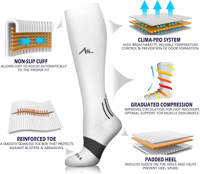 - 【FIBER CONTENT】Newzill CLIMA-PRO Graduated Compression Socks are comprised of 35% Spandex 65% Polyamide and they are Latex Free