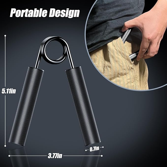 - FITS ALL HAND SIZES AND PORTABLE DESIGN: The grip is very portable and can easily be carried in your bag or pocket. You can take these hand grippers anywhere you want to exercise.Use them at home, in the office or while traveling to turn your downtime into productive workout time.Whether you are male or female, young or old, a beginner or an experienced athlete, you can start grip strength training anytime, anywhere. Suitable for all people and all hand sizes.