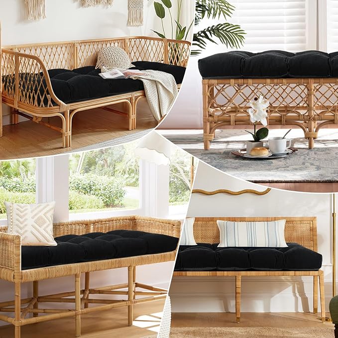 Bench Cushion 42 Inch - Chenille, High-Density Memory Foam, Non-Slip Bottom, Soft Durable Indoor Tufted Long Seat Cushion for Window Garden Furniture (Black, 42x16x4 Inch)