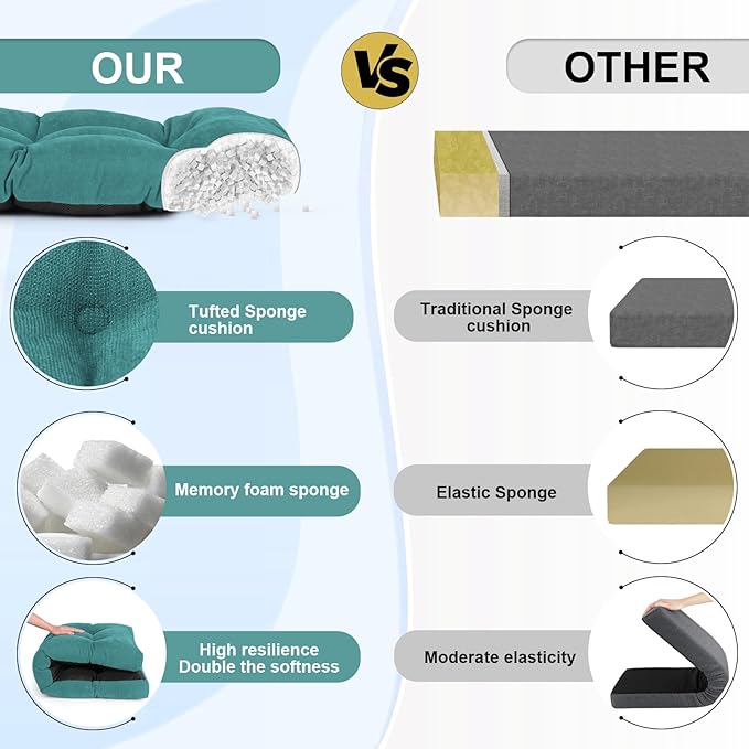 Bench Cushion 45 Inch - Chenille, High-Density Memory Foam, Non-Slip Bottom, Soft Durable Indoor Tufted Long Seat Cushion for Window Garden Furniture (Pastel Turquoise, 45x18x4 Inch)