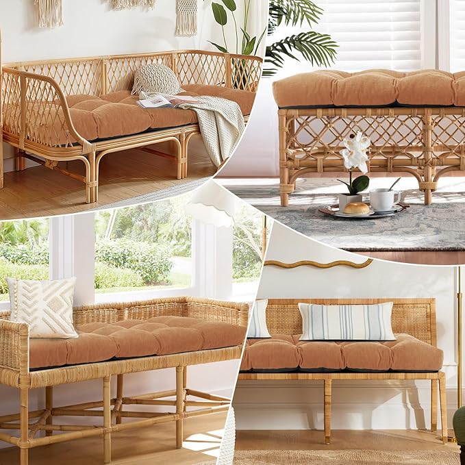Bench Cushion 42 Inch - Chenille, High-Density Memory Foam, Non-Slip Bottom, Soft Durable Indoor Tufted Long Seat Cushion for Window Garden Furniture (Amberglow, 42x16x4 Inch)