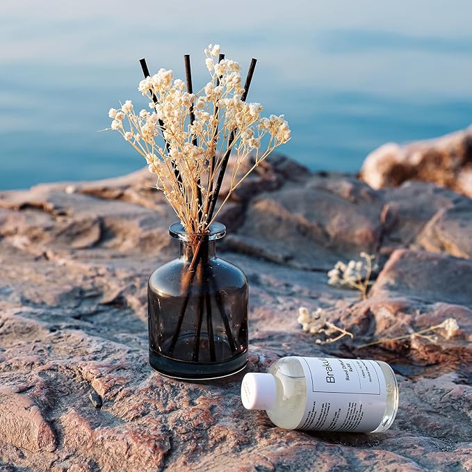 - 【Reed Diffuser Set Package Contents】:Eucalyptus & wild mint scent , Beautifully designed bottle, 180ml liquid refill, 8 aromatherapy sticks, dried baby's breath, and 1 luxurious and beautiful box.6.09 fl oz /bottles