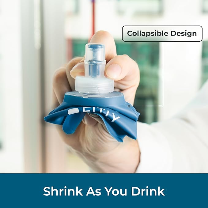 - HYDRATION ON THE MOVE: Our collapsible running soft flask is a compact and eco-friendly way to stay hydrated on the move! The soft water bottle is the perfect hydration tool for active individuals. Our soft water bottles for runners shrink as you drink, taking up minimal space and won’t slosh around, making it perfect for running, hiking, skiing, or any rigorous activity. Now available in a Petrol Blue color option.
