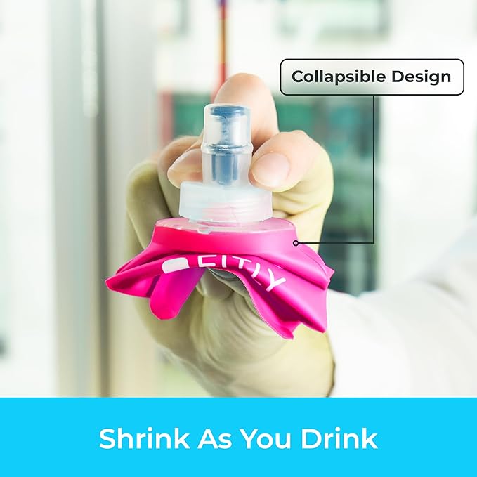 - HYDRATION ON THE MOVE: Our collapsible running soft flask is a compact and eco-friendly way to stay hydrated on the move! The soft water bottle is the perfect hydration tool for active individuals. Our soft water bottles for runners shrink as you drink, taking up minimal space and won’t slosh around, making it perfect for running, hiking, skiing, or any rigorous activity. Now available in a Pink color option.