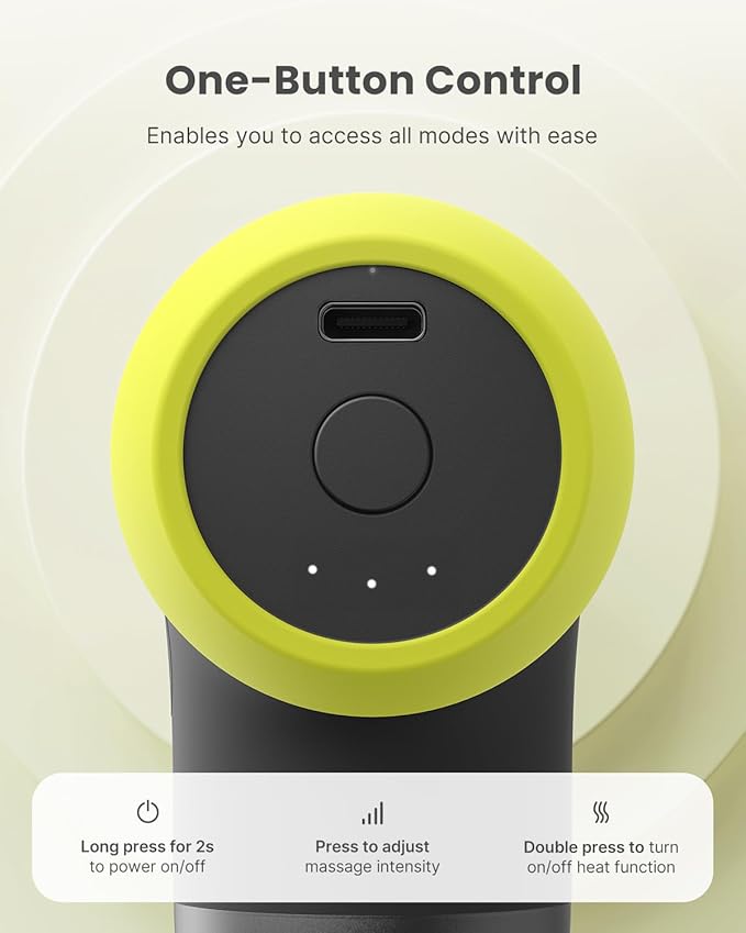 - Effective Heated Massage: Equipped with heat-conductive steel head, the deep tissue massage gun warms up to 46℃/114°F in just 1 minute, effectively reducing muscle tension and soreness.Note:Double press the Power button to enable the heating function. The light is red when the heating function is activated. Do not use the silicone massage head when using the heating function