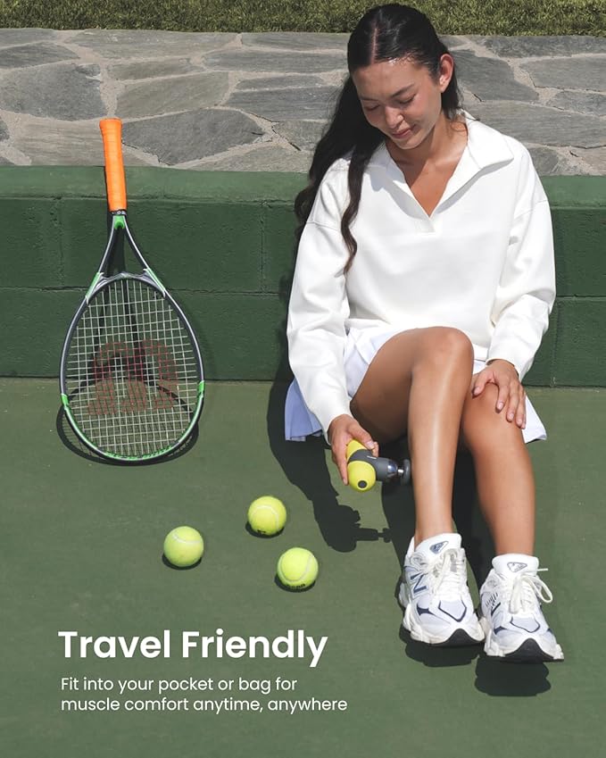 - Portable Comfort: The pocket-sized muscle massage gun weighs only 0.78lb, making easy to take soothing comfort for travel or daily commutes. It has a long-lasting battery life to accommodate your active lifestyle