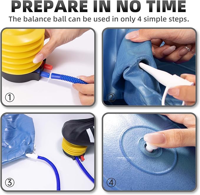 - 【Convenient To Use】You will get a free air pump,tubing,air pull-out and two air plugs in the package!You can inflate the yoga ball easily and deflate it whenever you stop using it.