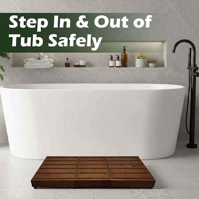 - 【Slip-Resistant & Weather-Resistant Build】The slatted wooden surface helps improve traction and allows water to drain quickly, keeping the platform safer to use in wet conditions. Perfect for both indoor entryways and outdoor porches, decks, and garages.