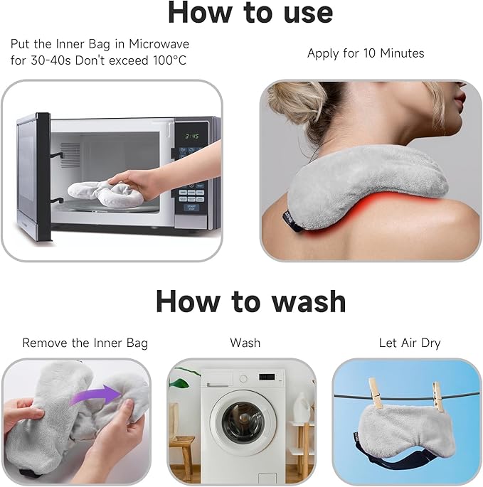 - [Hot Therapy] Put the sleep mask into a microwave for 40-60 seconds under 90°C/194 degrees Fahrenheit/600W (do not overheat), promote blood circulation around the eyes for hot therapy. Warm tips: Under 30min using time for hot therapy is suggested