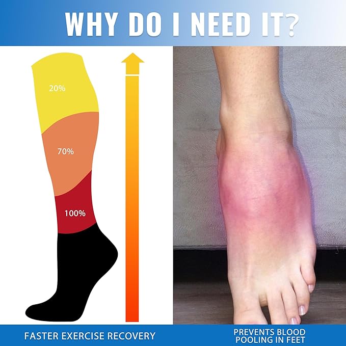 • SOCKS FOR WOMEN: 20-30mmHg circulation compression socks are with moderate compression and are recommended by doctors and trainers. Nurse compression socks create the highest support pressure at the ankle and gradually decrease along the legs, making your legs more comfortable.
