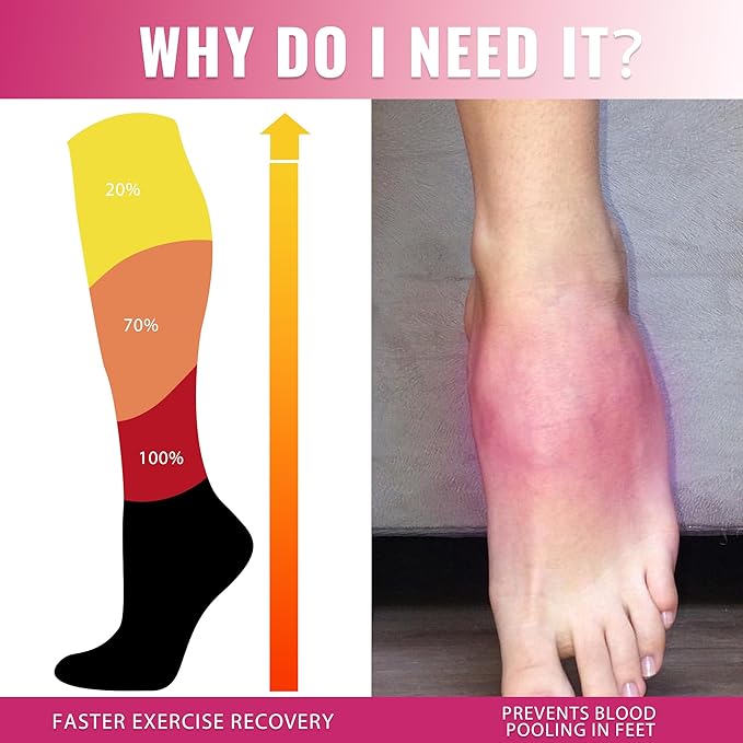 - SOCKS FOR WOMEN: 20-30mmHg circulation compression socks are with moderate compression and are recommended by doctors and trainers. Nurse compression socks create the highest support pressure at the ankle and gradually decrease along the legs, making your legs more comfortable.