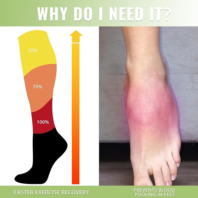 - SOCKS FOR WOMEN: 20-30mmHg circulation compression socks are with moderate compression and are recommended by doctors and trainers. Nurse compression socks create the highest support pressure at the ankle and gradually decrease along the legs, making your legs more comfortable.