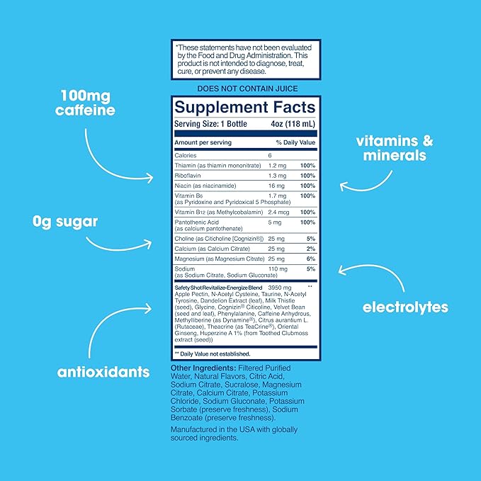 - Recover, Revive & Revitalize: Extend the night & seize the morning with Sure Shot. With a unique blend of electrolytes, vitamins, nootropics & antioxidants, Sure Shot helps replenish your body after a heavy night. 6-pack Citrus Splash flavor, 4oz each.