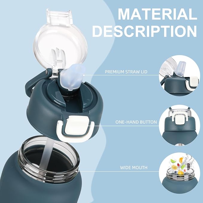 - [TWO DIFFERENT LIDS DESIGN]The 32 oz glass water bottle equipped with a spout handle lid and a straw handle lid,leakproof and durability, 2 lids both can be easily opened with one hand When you are on-the-go.The Motivational 1 Liter water bottle meet your different drinking needs on different occasions.