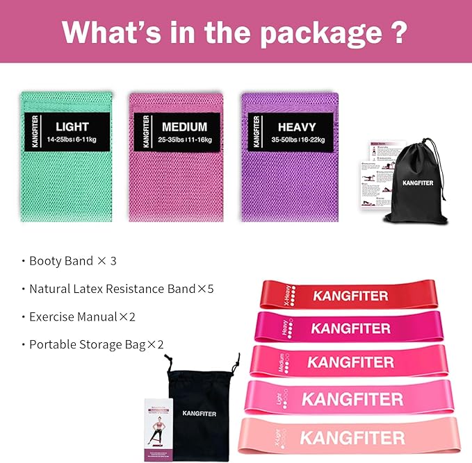 - 【PORTABLE AND ANYWHERE FITNESS】: KANGFITER resistance band comes with a handy carrying bag, making it easy to store and take with you. Whether you're at home, in the gym, in the office or outdoors, you can exercise and shape yourself whenever you want.