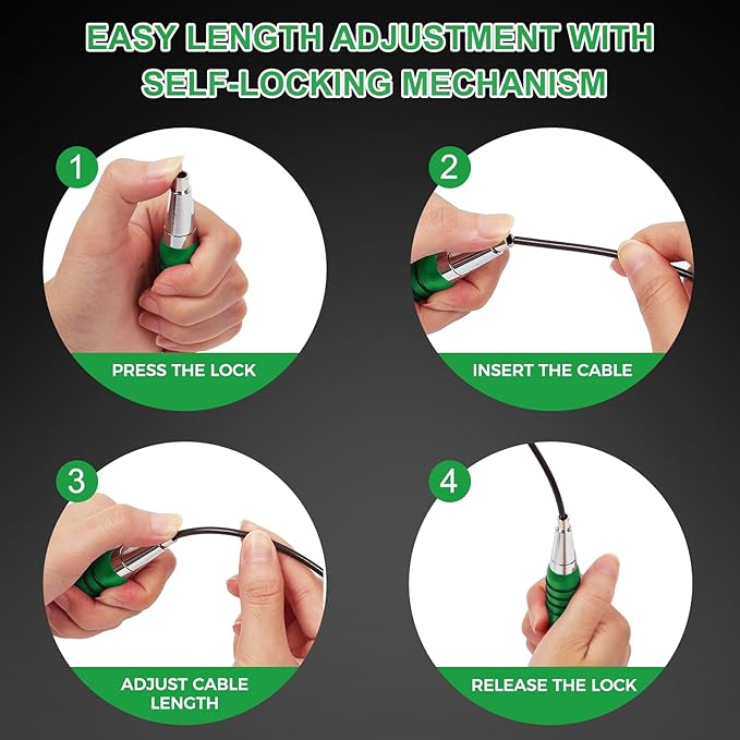 - Adjustable and Customizable: Tailor your workout with two included 9.8-foot polymer-coated cables, allowing you to easily adjust the jump rope's length to fit your height and training needs. Perfect for both men and women, this jump rope adapts to provide you with the ideal fitness experience!