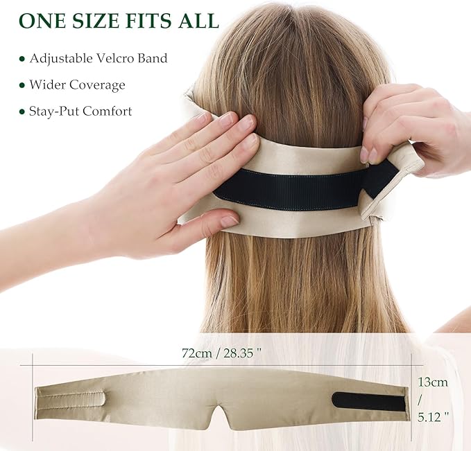 - 【Adjustable band fits all heads】To ensure the stability and comfort of the sleep mask, we have designed a wide padded strap with an adjustable length. This makes it easy for both adults and children to wear without slipping. Additionally, the sleep mask features silk-lined Velcro, which not only secures the mask in place but also prevents the common issue of traditional Velcro sticking to your hair, providing a worry-free experience.