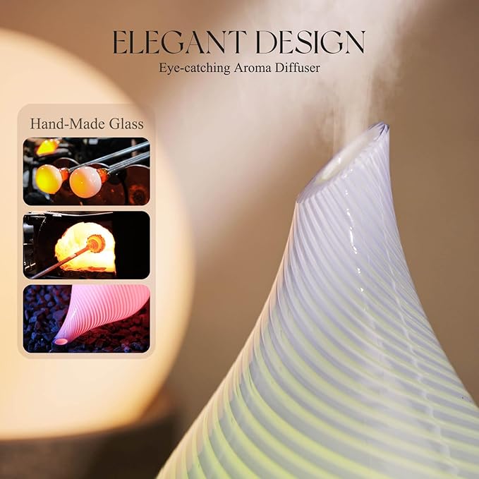 - UNIQUE ART DECOR - 150ml glass essential oil diffuser with star-shaped glass cover & wood grain base. Adds artistic harmony to your living space, perfect for bedrooms, living rooms, kids' rooms, studies, offices, & yoga studios. Enhances ambience