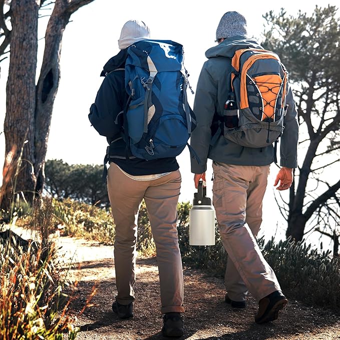 - LARGE CAPACITY, CONTINUOUS HYDRATION : Stay hydrated throughout the day with our high-quality half gallon reusable water bottle. This insulated bottle, with a large capacity of 64oz, is perfect for outdoor adventures like camping and hiking. Ideal for all your travel needs, this bottle guarantees convenience and ample hydration.