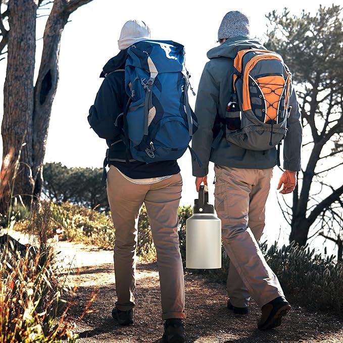 - LARGE CAPACITY, CONTINUOUS HYDRATION : Stay hydrated throughout the day with our high-quality 1-gallon reusable water bottle. This insulated bottle, with a large capacity of 128oz, is perfect for outdoor adventures like camping and hiking. Ideal for all your travel needs, this bottle guarantees convenience and ample hydration.