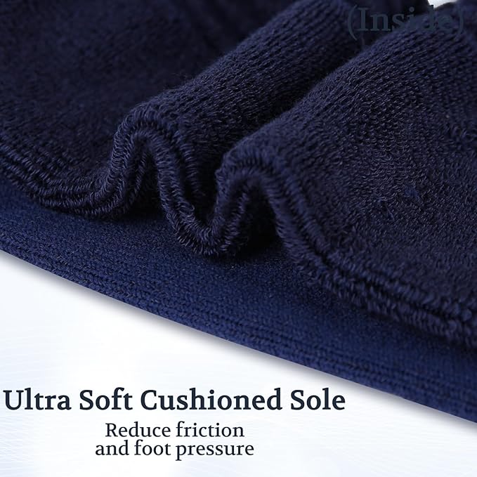• 1.【Non-binding & No-irritating】: The top is not tight or binding at all. Slips on easily over ankles but does not slide down, no more marks on legs from socks. Seamless toe enhances your everyday comfort and keeps your toes and blood circulation in top shape. The cushioned sole brings super comfort and touch for diabetic patients’ sensitive feet.