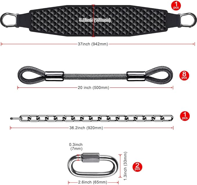 - ENHANCE YOUR STRENGTH TRAINING: This set also includes a fitness dip belt with a 36-inch heavy duty chain that can be attached to any weight plate or dumbbell. Use it to add extra resistance and challenge to your squats, lunges, deadlifts, and other exercises