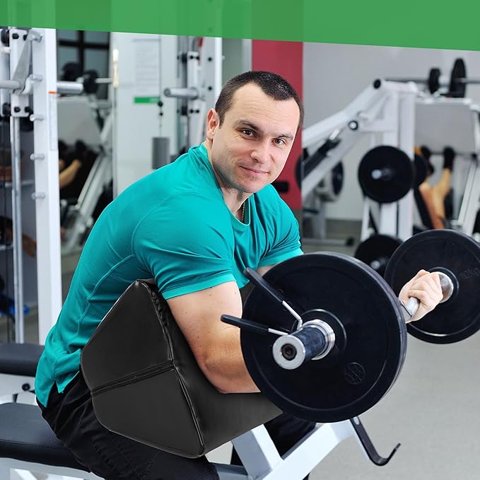 - 【High Quality Material】:The preacher curl pad is made of high-quality black leather. It is waterproof and sweat resistant. The preacher curl pad is filled with a high-quality sponge to promote even and steady arm exercises.