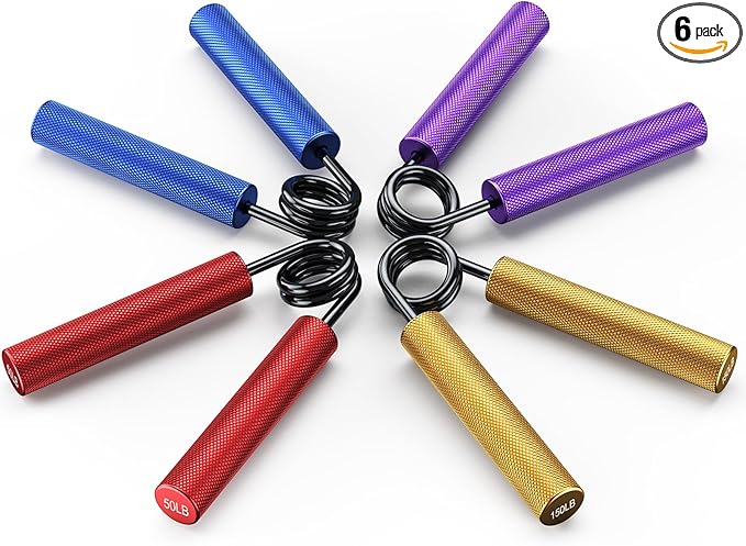 Grip Strength Trainer 6 Pack,50LB-300LB Metal Hand Grip Strengthener,Non-Slip Heavy-Duty Forearm Exerciser,Hand Gripper for Muscle Building and Hand Rehabilitation Exercising