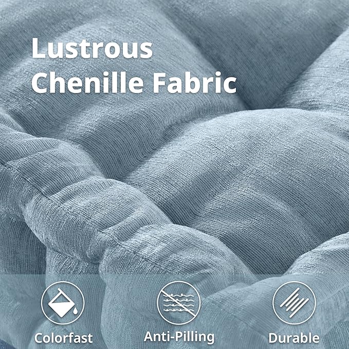 - High Quality Finish - The Azza Large Floor cushion is a sophisticated large sitting Floor pillow featuring a lustrous Chenille tufted finish that is adorned with a HAND-SEWN scalloped edge, providing a luxurious look and high quality feel