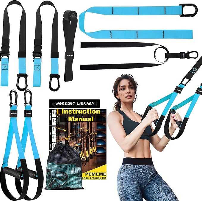 Home Resistance Training Kit | Full-Body Workout with Suspension Trainer Straps, Door Anchor, Handles, and Carrying Bag | Complete Home Gym Equipment