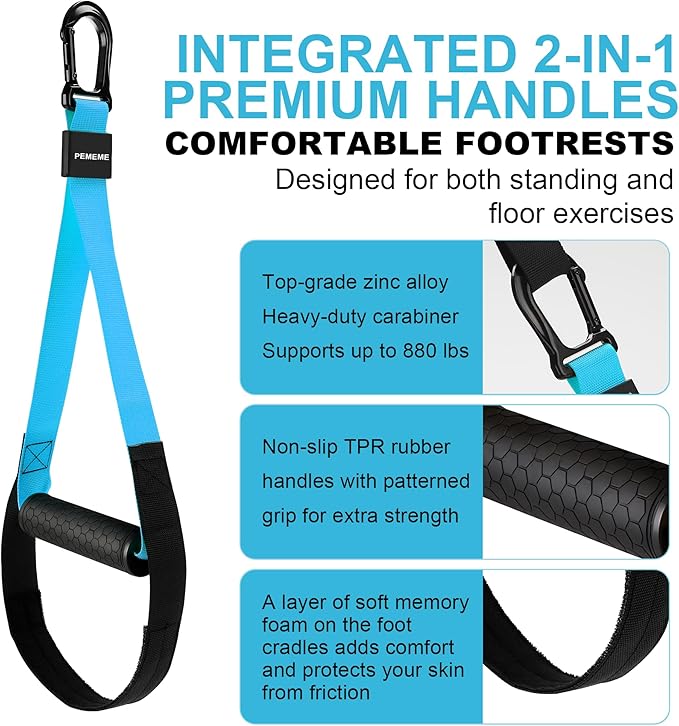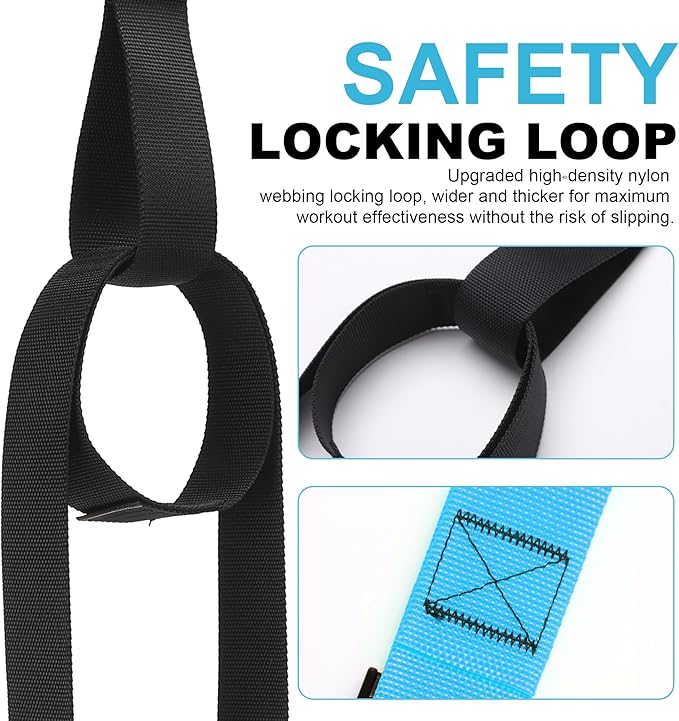 - [Premium Quality Construction] - Crafted from high-density nylon and strong polyester fiber, our resistance trainer ensures durability and reliable performance. Equipped with comfortable grip-proof handles and heavy-duty carabiners, this kit ensures safety and longevity. It's an essential piece of home exercise equipment for those who need a quick setup and demand high-quality workout gear.