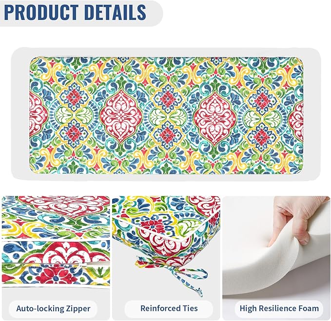 - 3β Thick Padding Support - Constructed with high resilience sponge, high density provides you with enough support and comfort, quickly recovers after long-lasting use, not easy to collapse. Enjoy relaxation with reinforced ties and non-slip mat, outdoor seat cushions complement your outdoor space and stay securely in place.